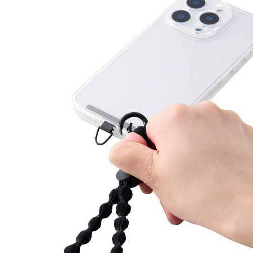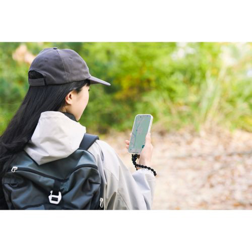 手首や腕から提げて持ち歩けるので、両手がふさがらずスマホ操作もスムーズ。落下、盗難、紛失防止にもなります。