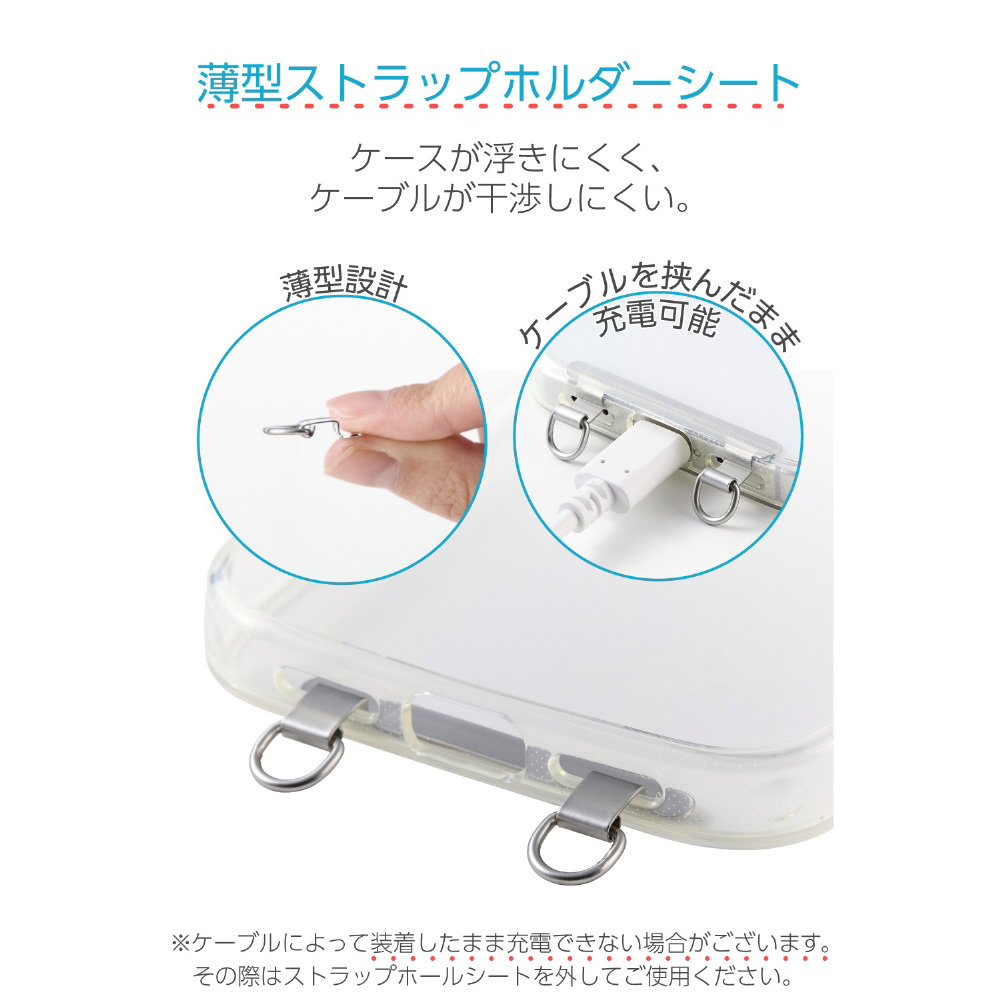 ※ストラップホールシートがちぎれるなどの破損の原因になるため、穴の縁が鋭かったり、突起があったりする状態のケースは使用しないでください。