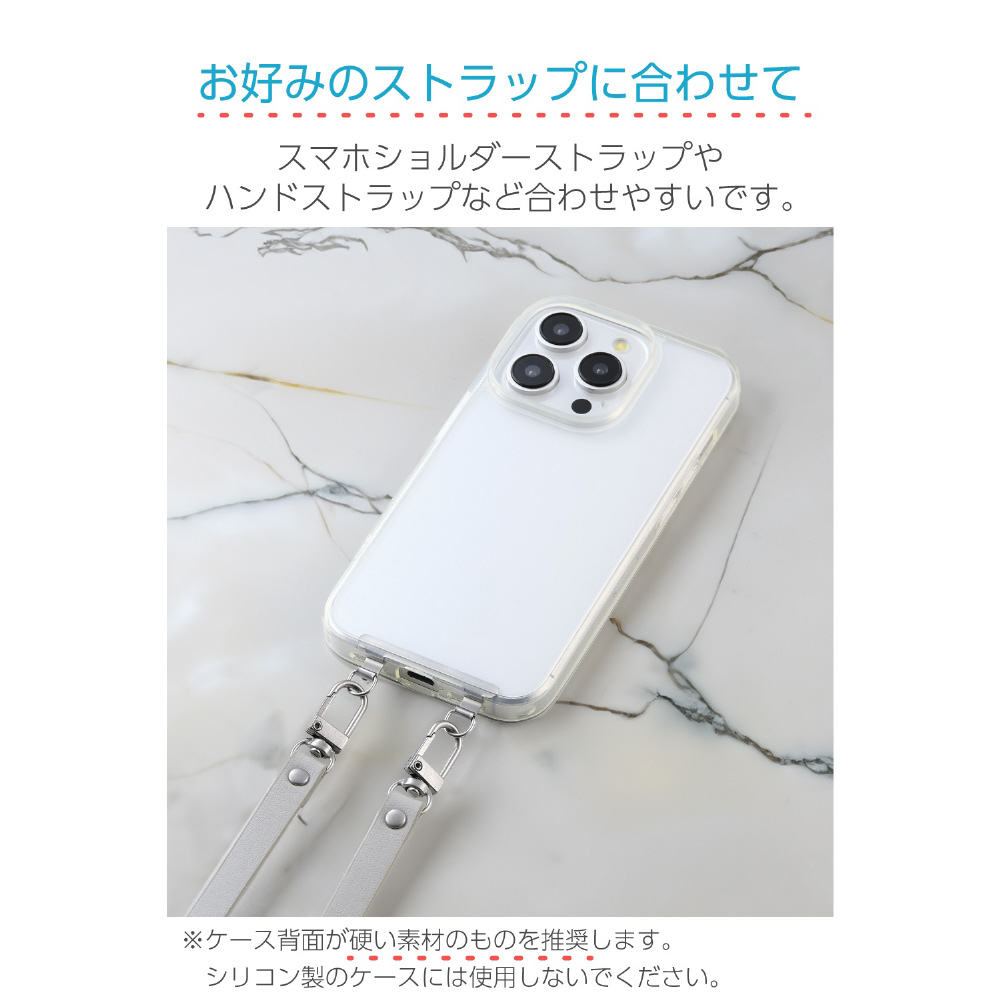 スマホショルダーストラップやハンドストラップなど、お好みのストラップと合わせて使えます。