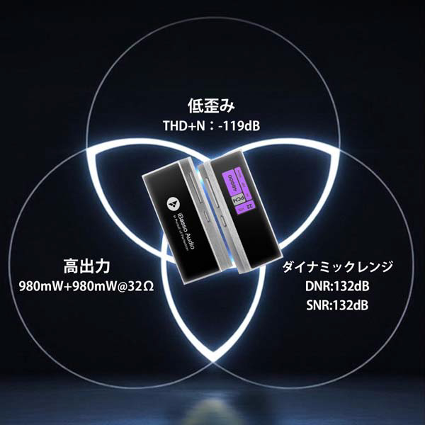 ●THD+N:-119dB(0.00011%)@1kHz 300Ω負荷