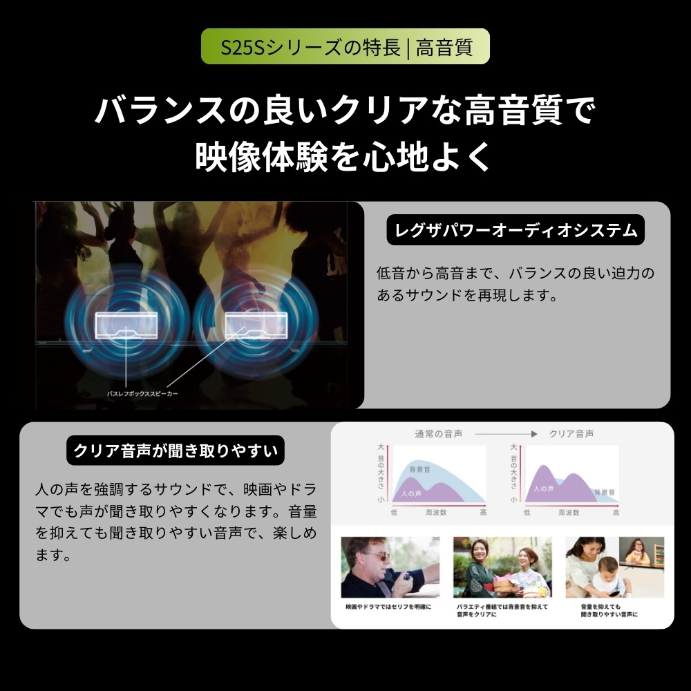 人の声を強調するサウンドで、映画やドラマでも声が聞き取りやすくなります。