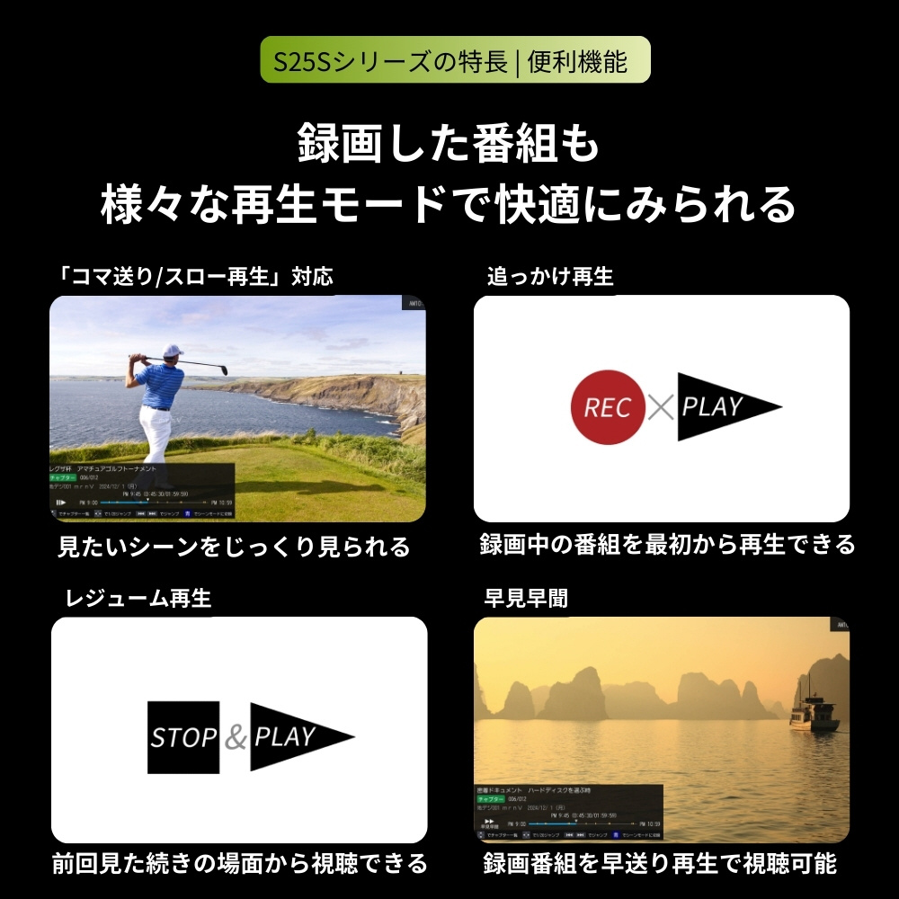 また、地上/BS・110度CSデジタル放送チューナーを2基搭載しているので、番組を録画している最中でも他チャンネルの番組を視聴できるため、録画中も操作を制限されることなく快適に視聴できます。