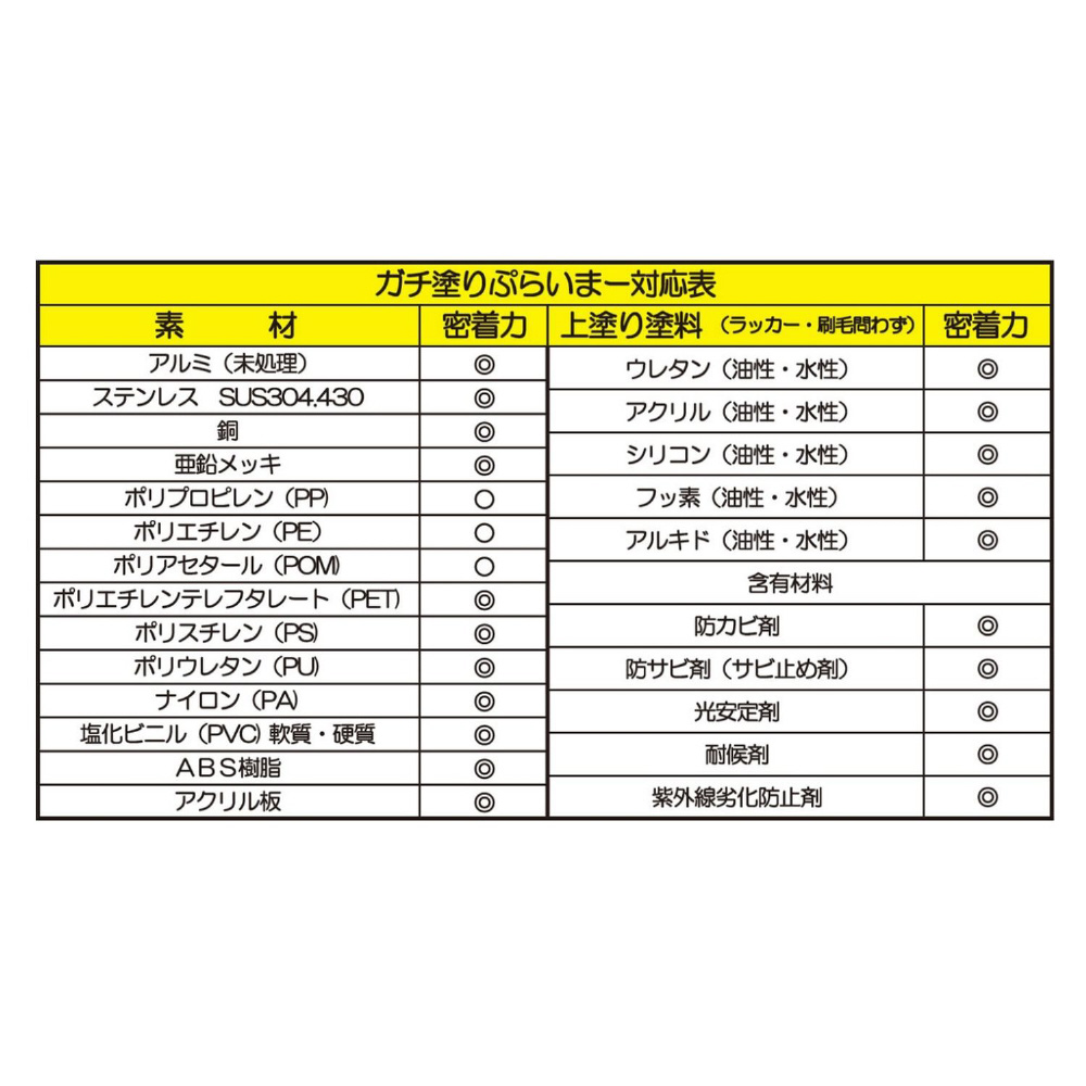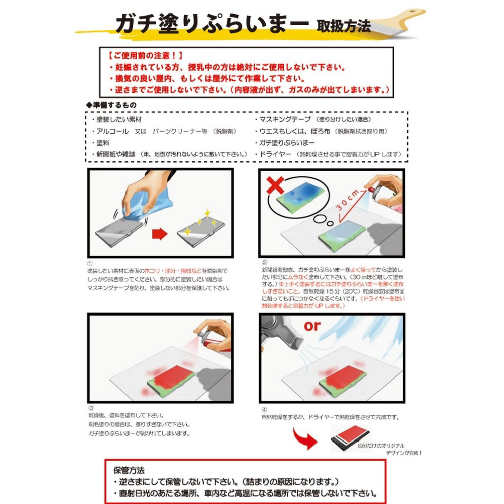 あらゆる素材に対応!ガチ塗りをひと吹きで簡単塗装!常温(20℃)15分で上塗り可能!上塗り塗料との相性も良く、塗料選びも好きな色を選ぶだけ。