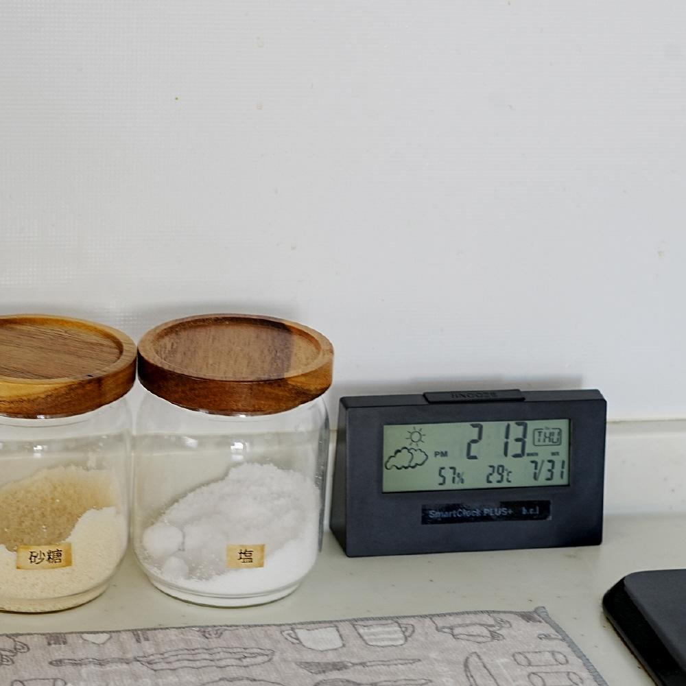 日付・曜日・時間・天気・温湿度を一目でチェックできるので、忙しい朝でも無駄なく準備ができます。