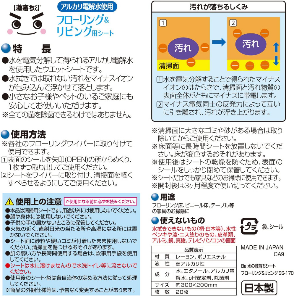 水拭きでは取れない油汚れなどの酸性汚れをマイナスイオンが包み込んで浮かせて落とします。小さなお子様やペットのいるご家族にもお使いいただけます。※全ての菌を除菌できるわけではありません。 水を電気分解して得られるアルカリ電解水を使用したウエットシートです。