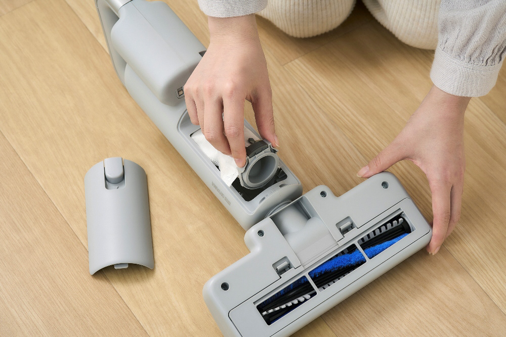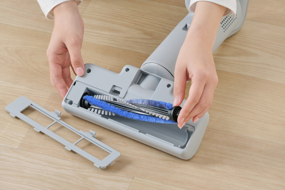 ■新ブラシ素材【ソフトブラシ×ゴムブレード】と1分間に約12.4万回の【叩き】機能付きで、しっかり掻き出して吸引します。