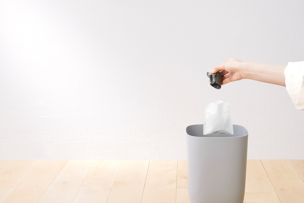 ■紙パック式でゴミ捨て簡単。抗菌・防臭効果のある銀イオン加工の不織布製で手を汚さずにごみ捨てができます。