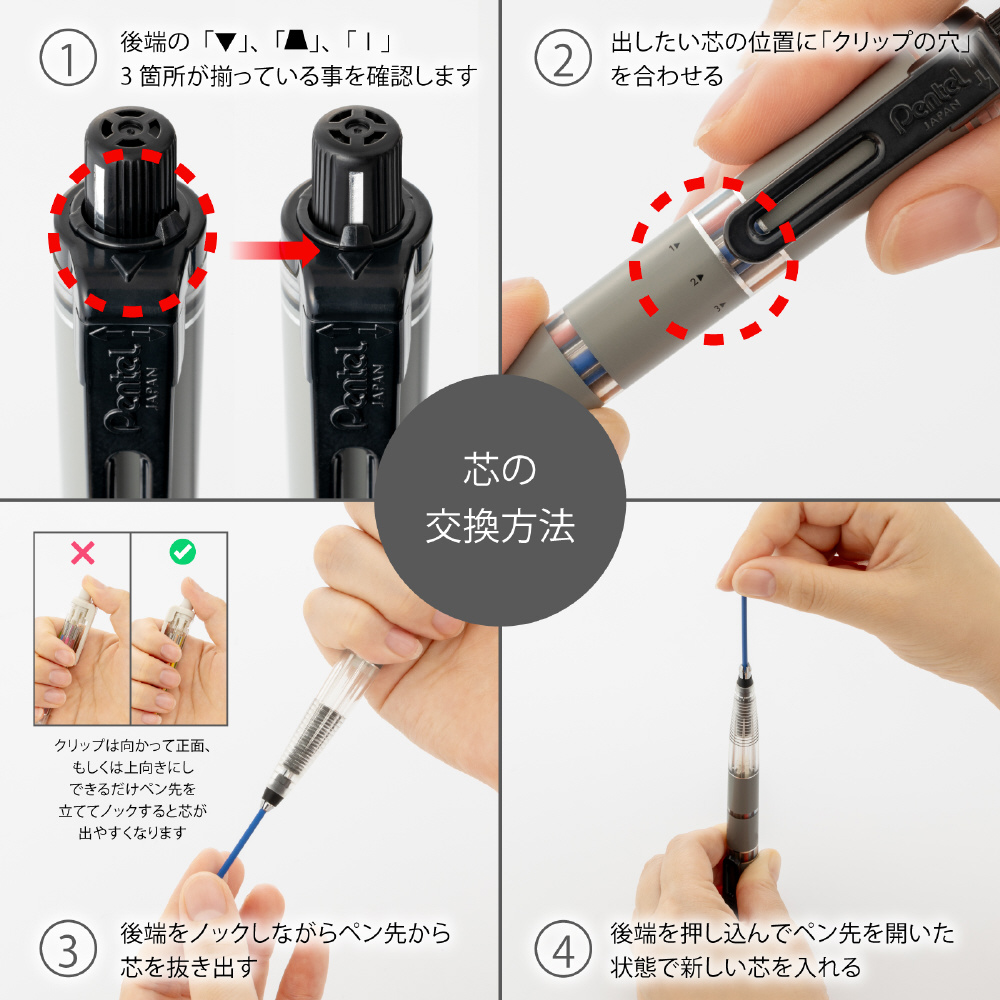 内蔵芯:赤・青・緑・橙・黄・ピンク・紫・HB鉛筆芯