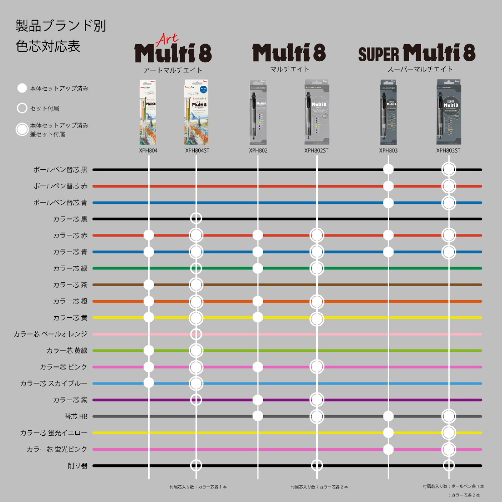 マルチ8シリーズは“思考と創造を支えるトータルツールブランド”として2026年リニューアルします。マルチ8、スーパーマルチ8はその1本で情報整理が可能で、思考を加速させるツールです。マルチ8(PH802)はアイデアや情報を絵や図などで捉えるビジュアル思考派に、スーパーマルチ8(PH803)は文章や言語情報で捉えるテキスト思考派にオススメです。