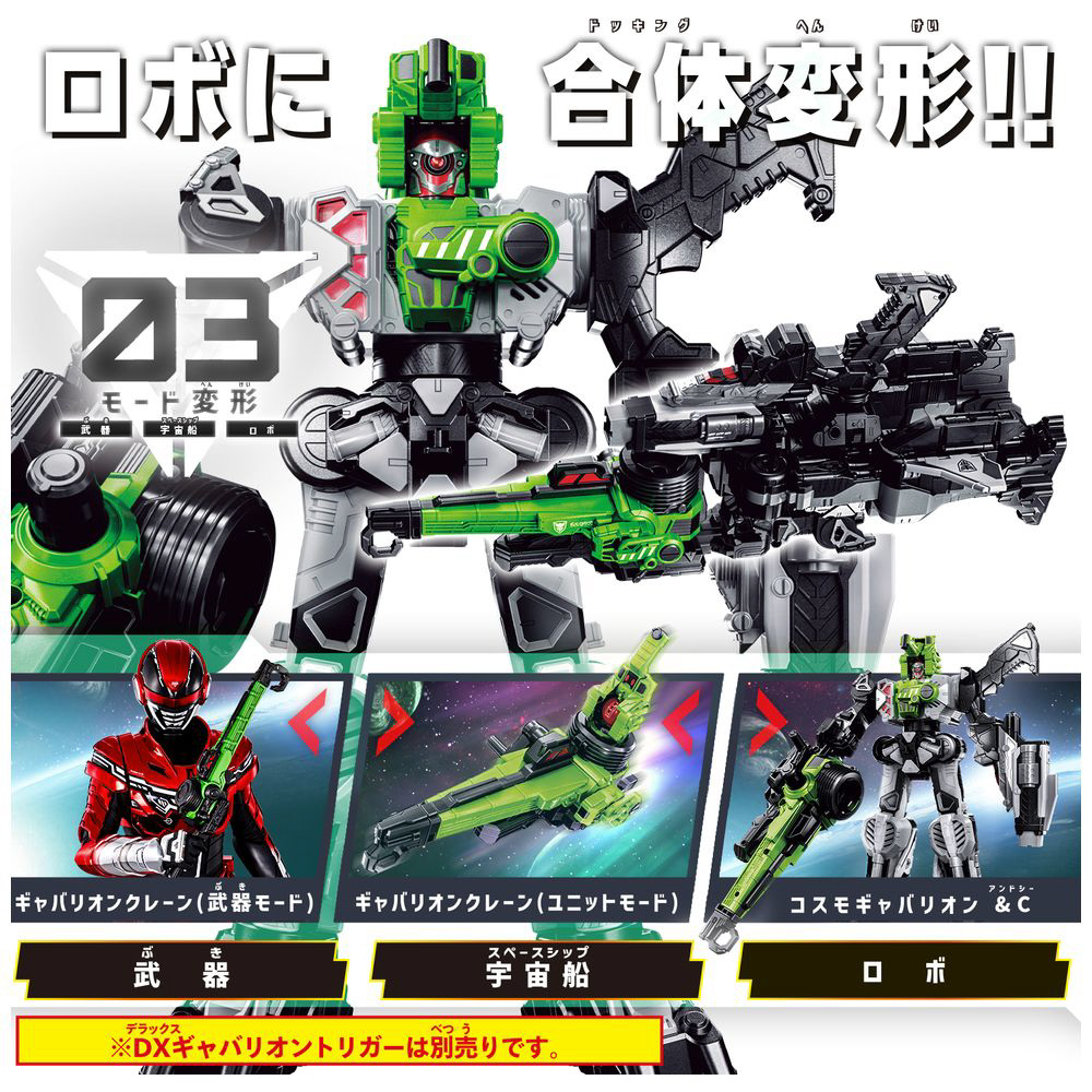 『超宇宙刑事ギャバン インフィニティ』に登場し、武器モードとユニットモード、ロボモードの3モードを楽しめるアイテムです。