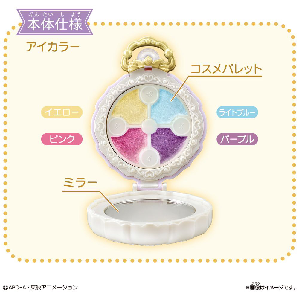 ミラー付きで、ライトブルー、パープル、ピンク、イエローの4色のアイカラーが入っています。