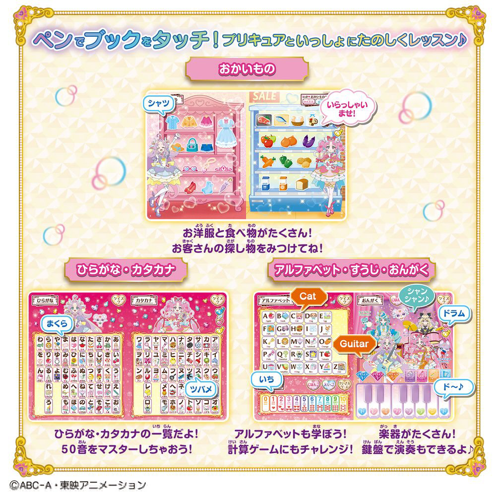 探偵ゲームや、50音、数字や音楽など、プリキュアと楽しく学べるレッスンが盛り沢山の商品です。