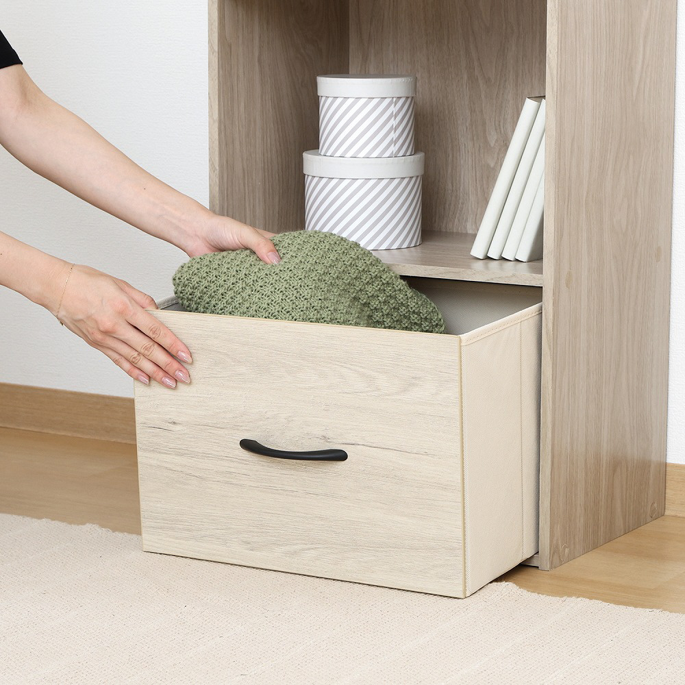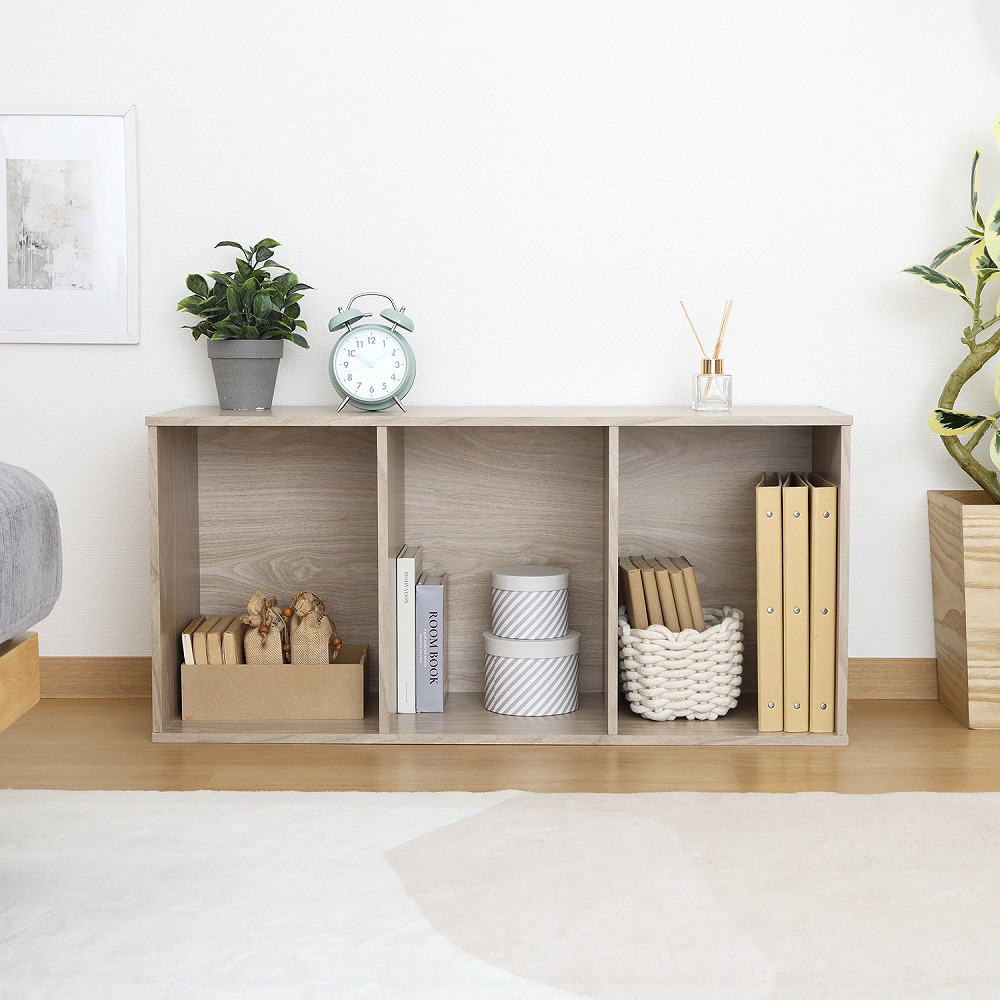 棚板をしっかり固定するので、縦横どちらの向きでも使えます。横にすればA4サイズのファイルも収納可◎