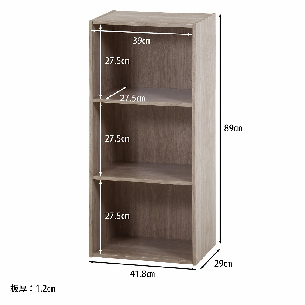 カラーボックス3段 アッシュグレー 43858