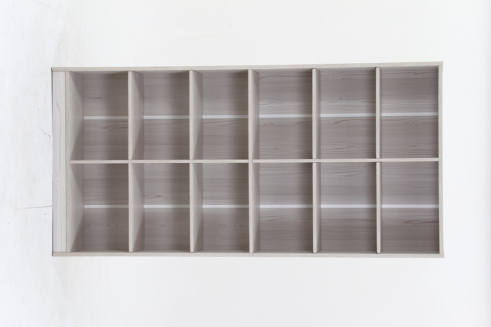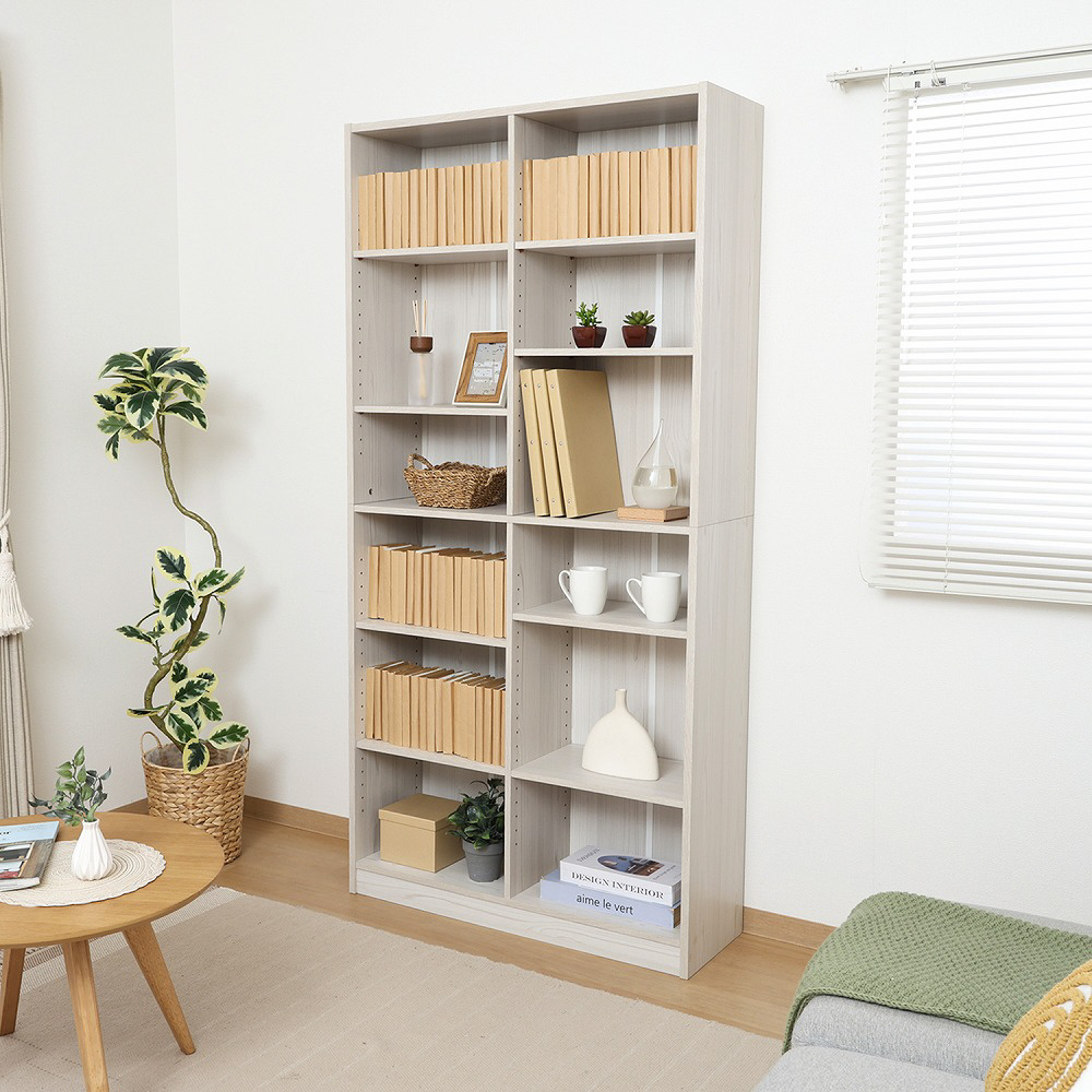 中央の固定棚を除く合計8枚の棚板は、高さを調節できます。