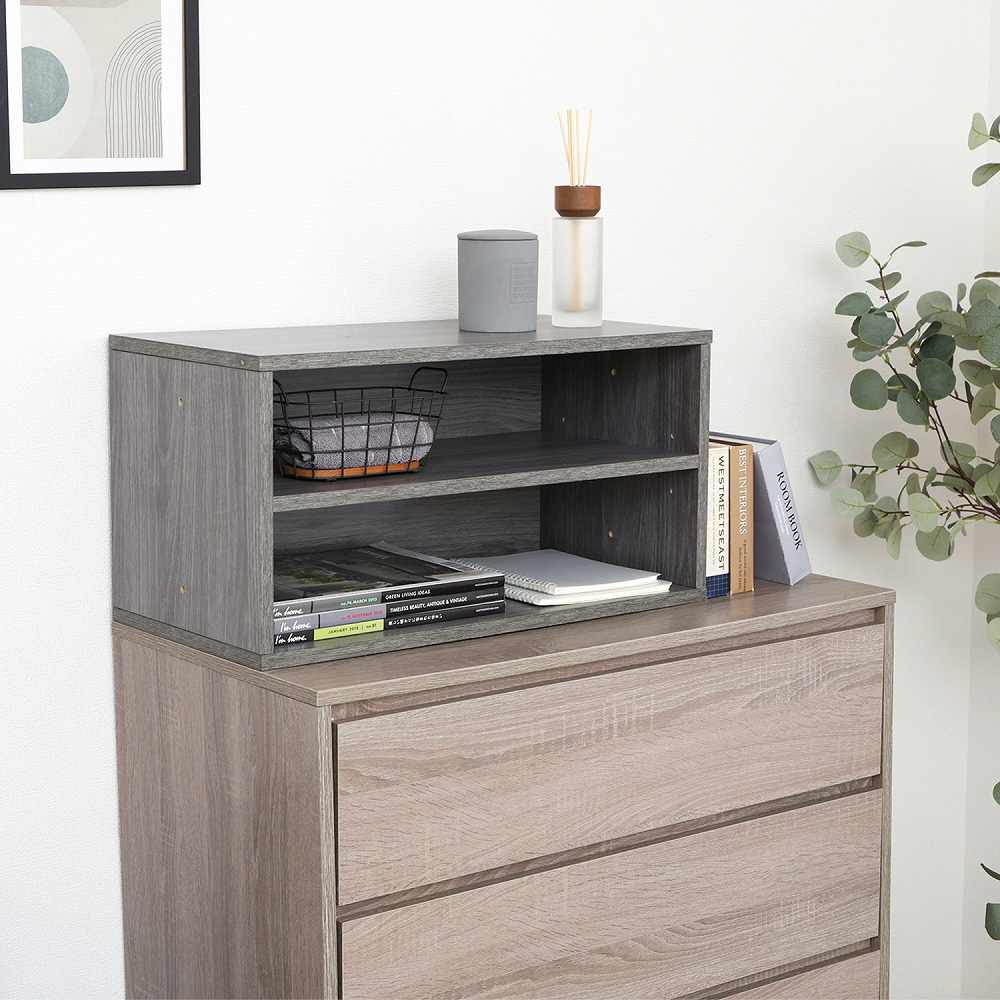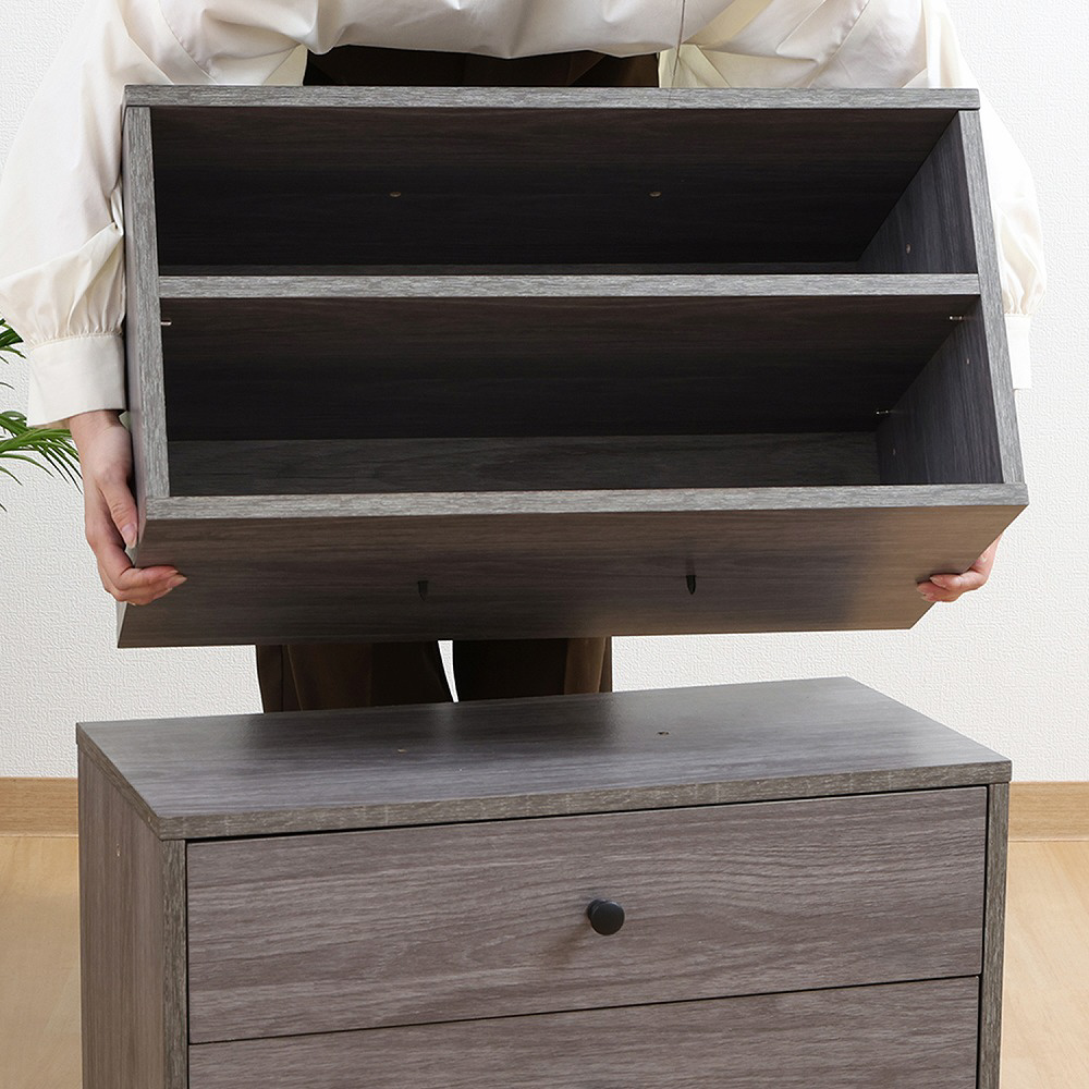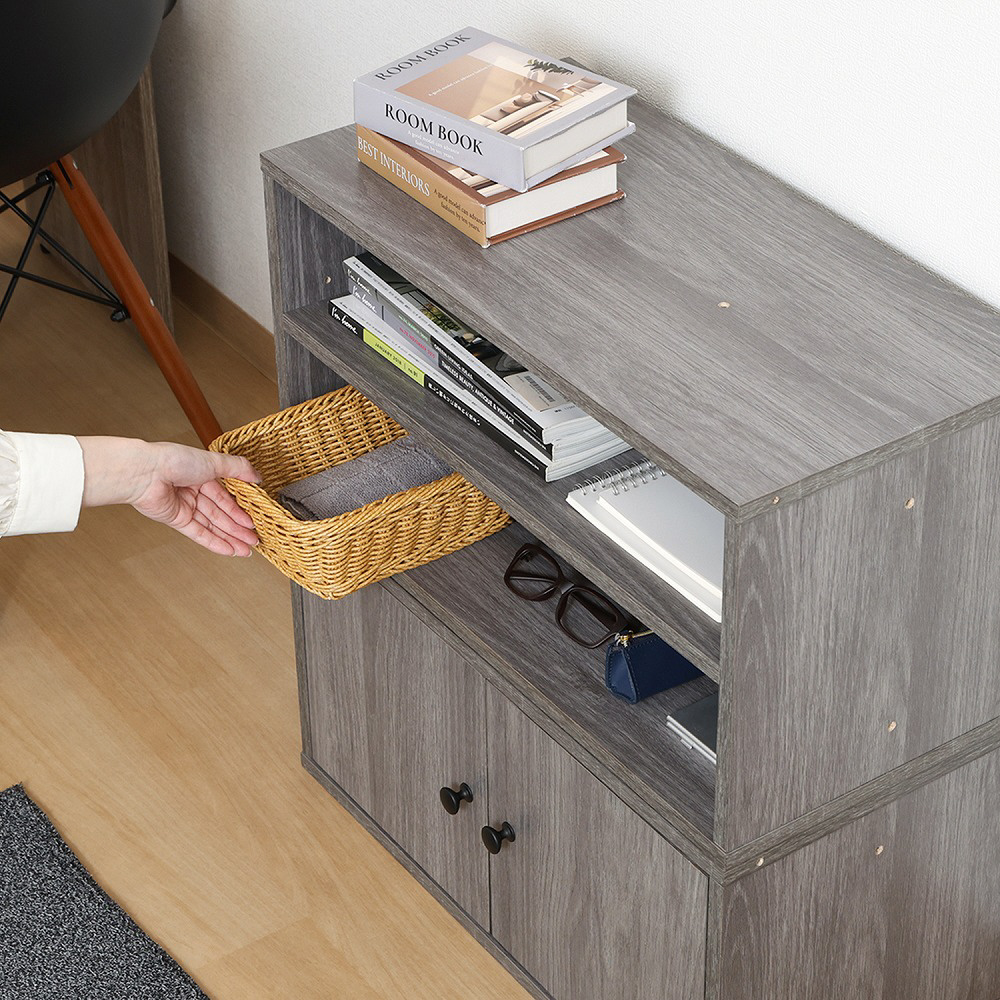 2段に分かれているので、高さのないものを分けて収納することができます。