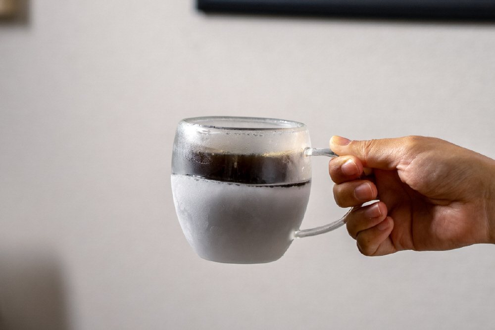 氷で薄まってしまうアイスコーヒーやアイスラテは美味しくない、そんなつまらない想いを消し去るために『IceQuick Glass』を開発しました。
