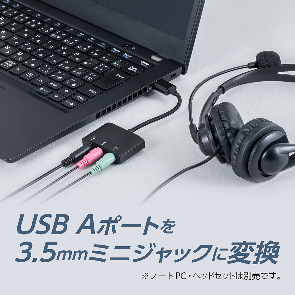 イヤホン/マイク端子を搭載していないパソコンでステレオミニプラグのイヤホンやヘッドセットなどを使用できるようになります。お手持ちのステレオミニプラグのヘッドセットやヘッドフォンを有効活用できます。