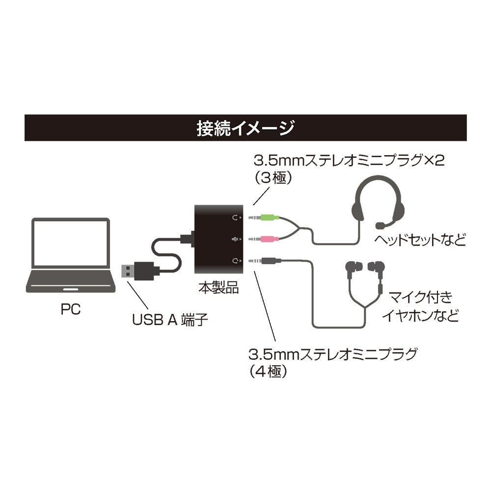 「USBオーディオ変換アダプタ 3極、4極対応」