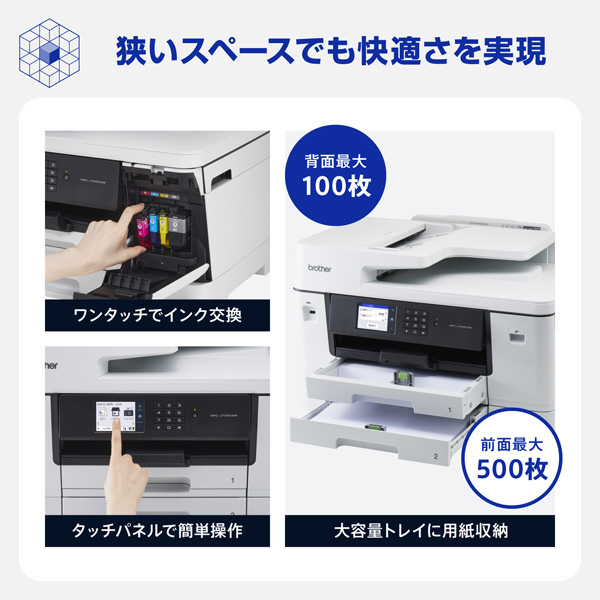 インク交換、用紙補充を本体前面で完結できるフロントオペレーションを採用。