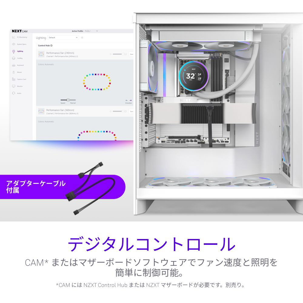 NZXT CAMソフトウェアや各社マザーボードソフトで、自由なカスタマイズが可能です。