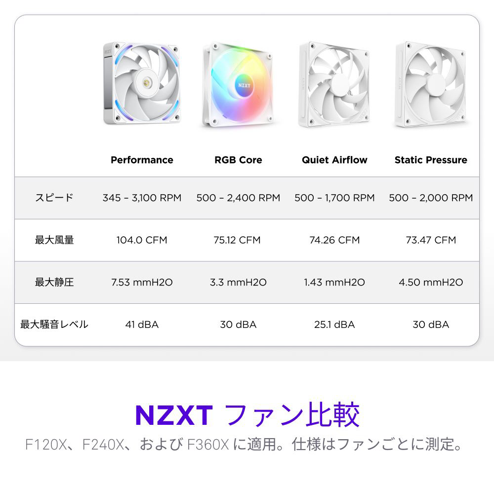 ケースファンx3 [120mm /3100RPM] F360X(シングルフレーム) ホワイト RF-U36PN-W1