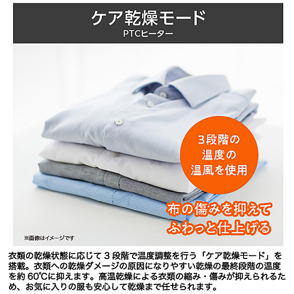 ■3段階の温度調整で衣類にやさしく乾燥する「ケア乾燥」