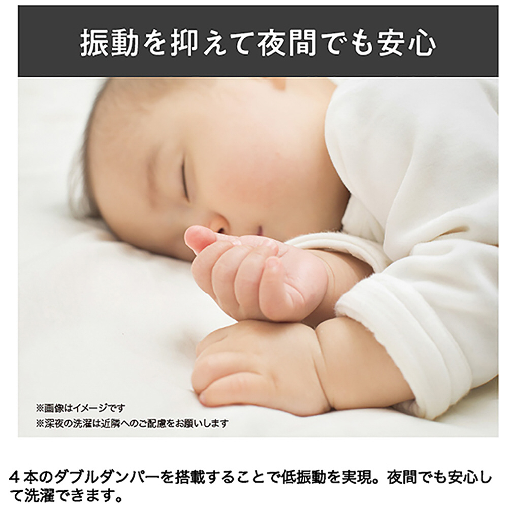 4本のダブルダンパーを搭載することで低振動を実現。夜間でも安心して洗濯できます。※2