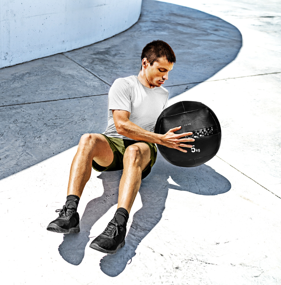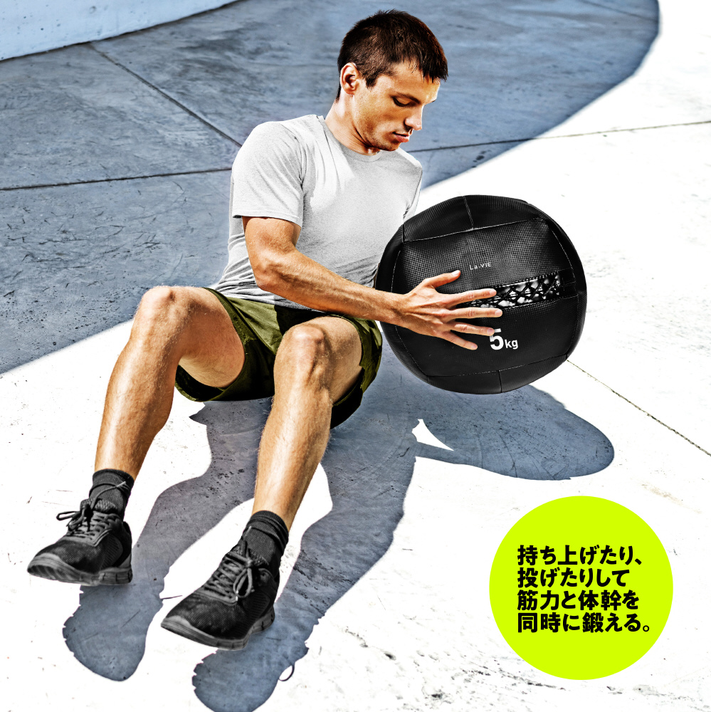 表面が滑りにくく、持ちやすいメディシンボールです。