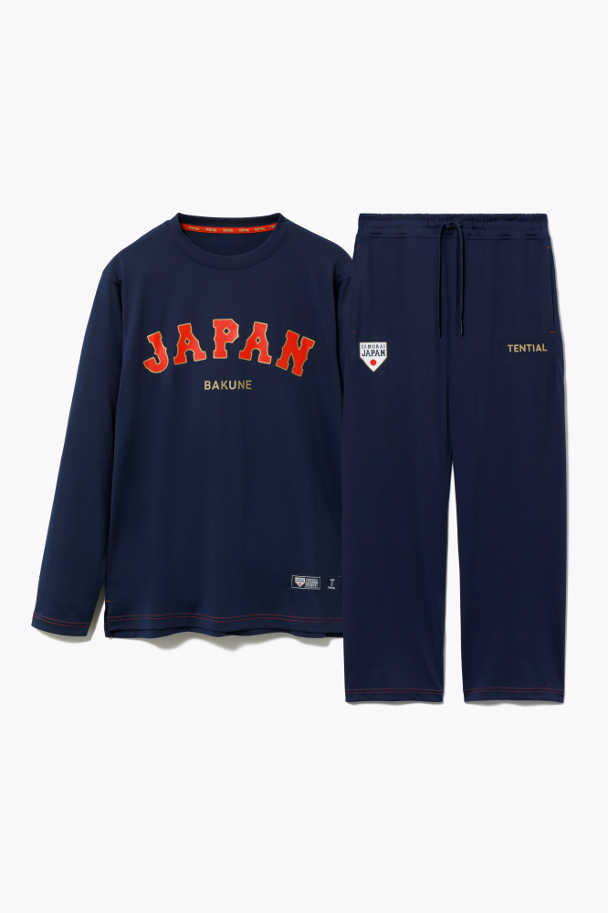 特殊繊維「SELFLAME」を使用し、着て寝るだけで疲労回復を促進するBAKUNEシリーズ。リカバリーウェアとしての機能はそのまに、侍ジャパンユニフォームをイメージした特別なデザインを採用しました。裾にはオフィシャルライセンスマークの織りネームが入る特別仕様となっています。