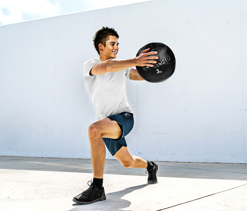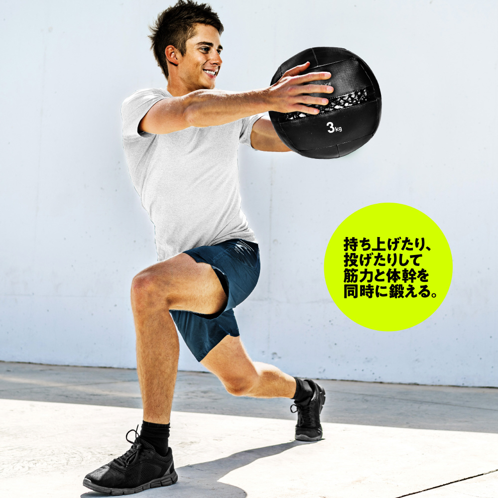 表面が滑りにくく、持ちやすいメディシンボールです。