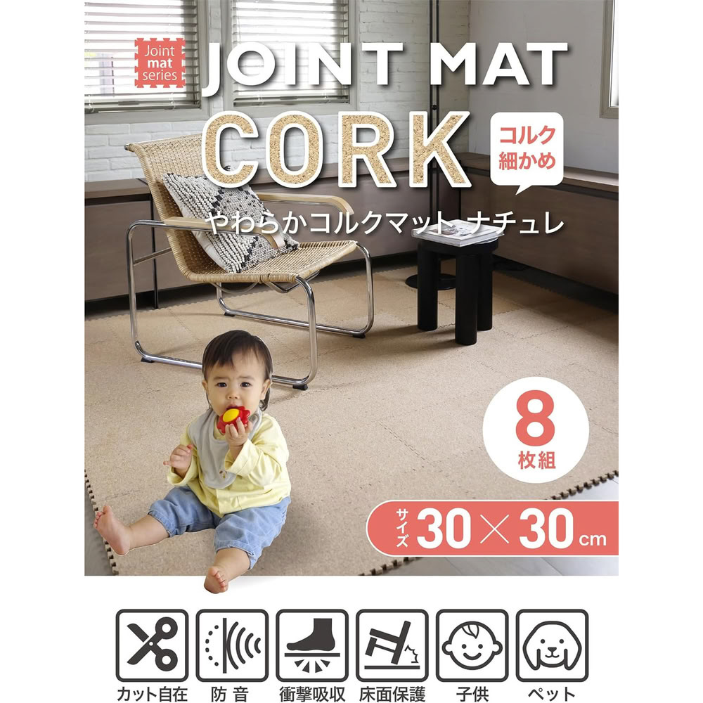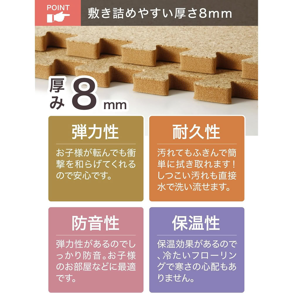 お子様やペットのいるご家庭などにおすすめな、「やわらかコルクマット 8枚組」。