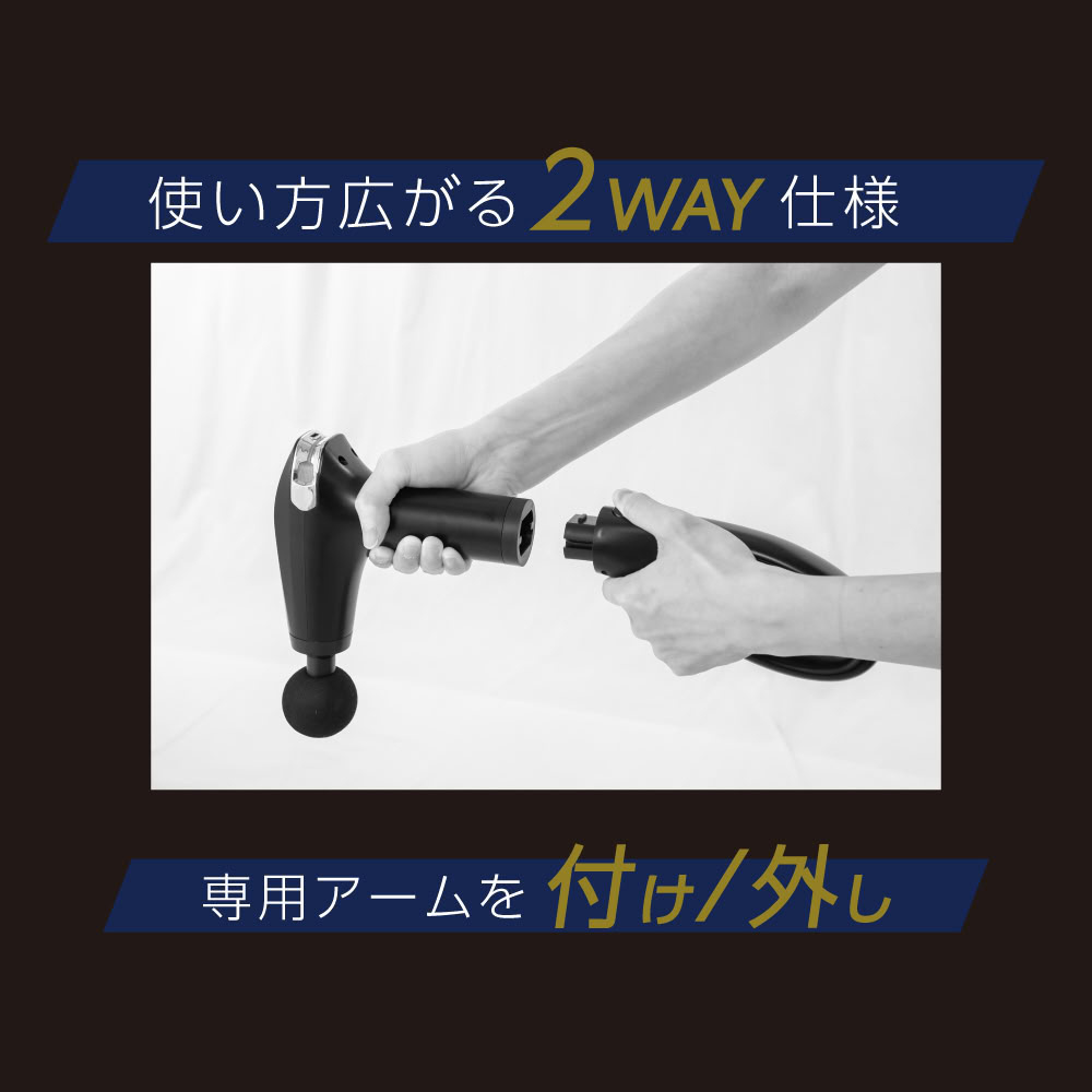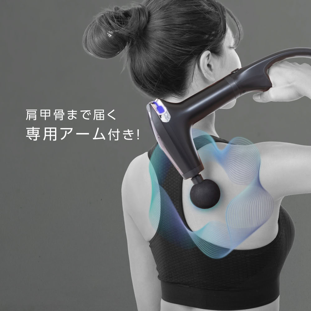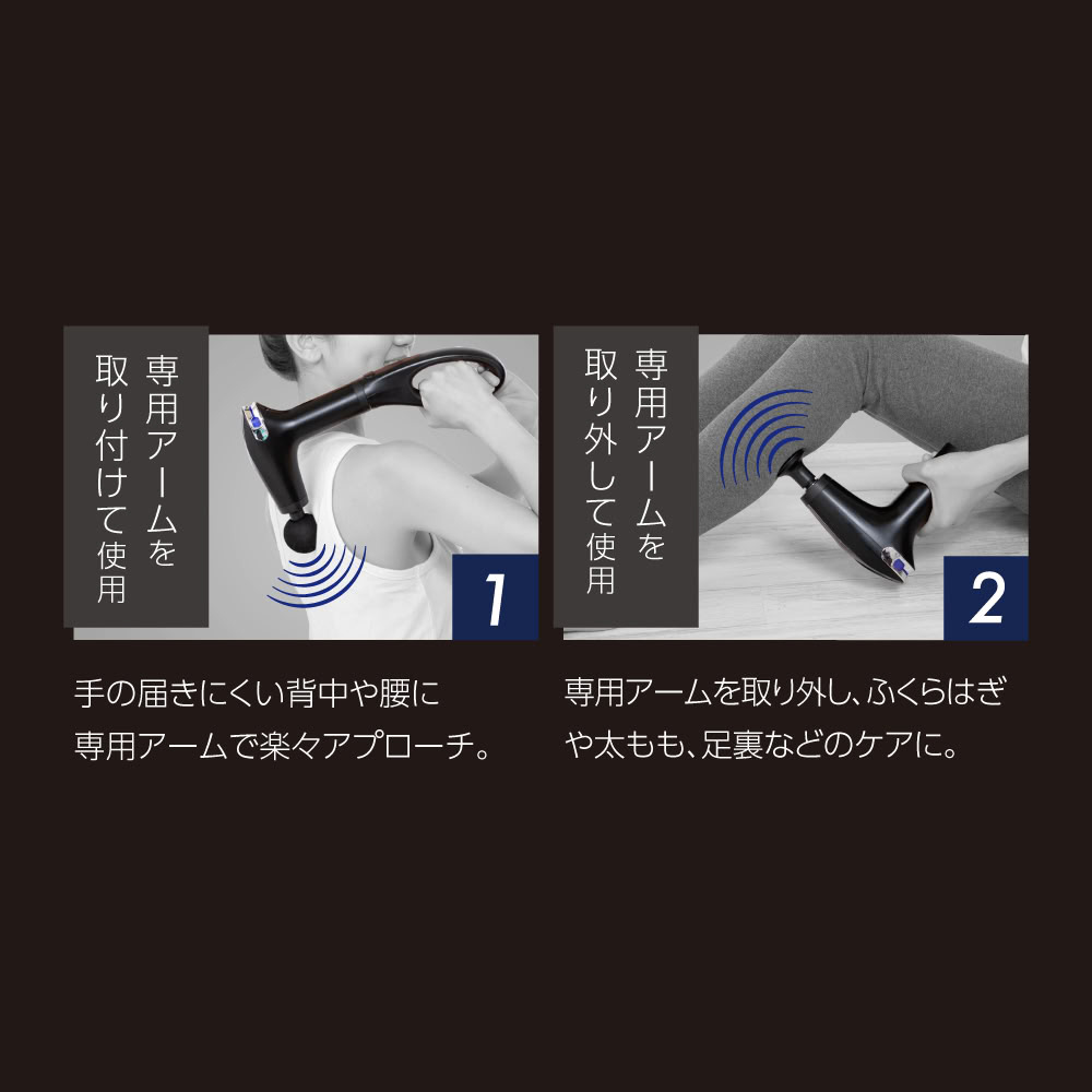 専用アームを取り付けて使用:手の届きにくい背中や腰に専用アームで楽々アプローチ。