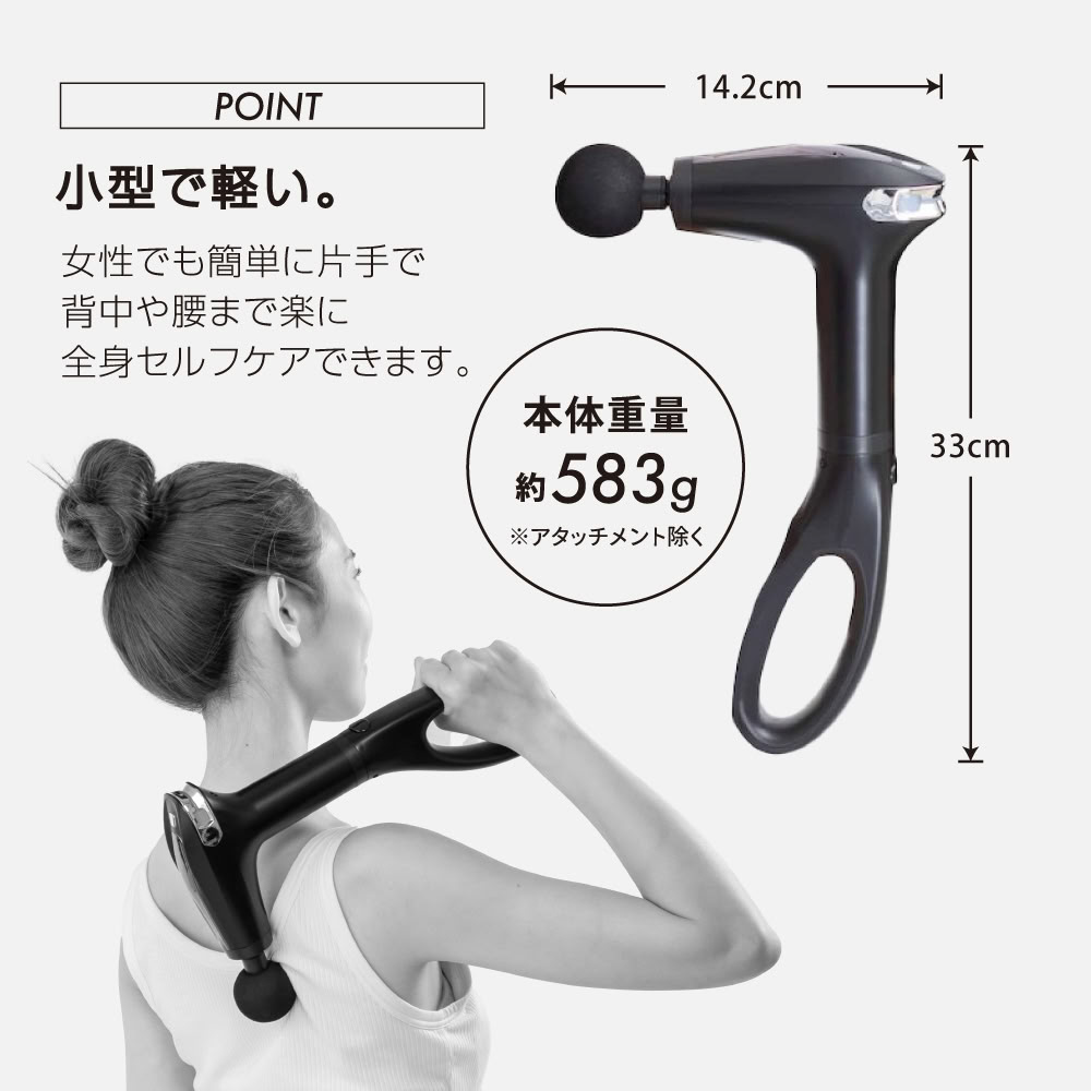 女性でも簡単に片手で背中や腰まで楽に全身セルフケアできます。