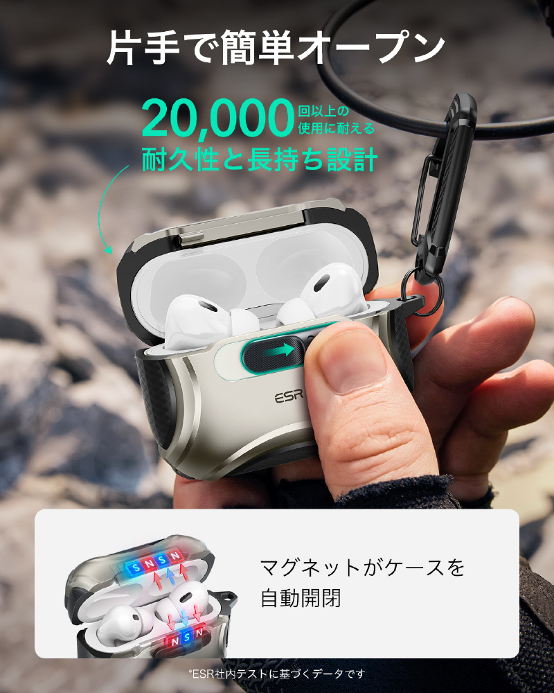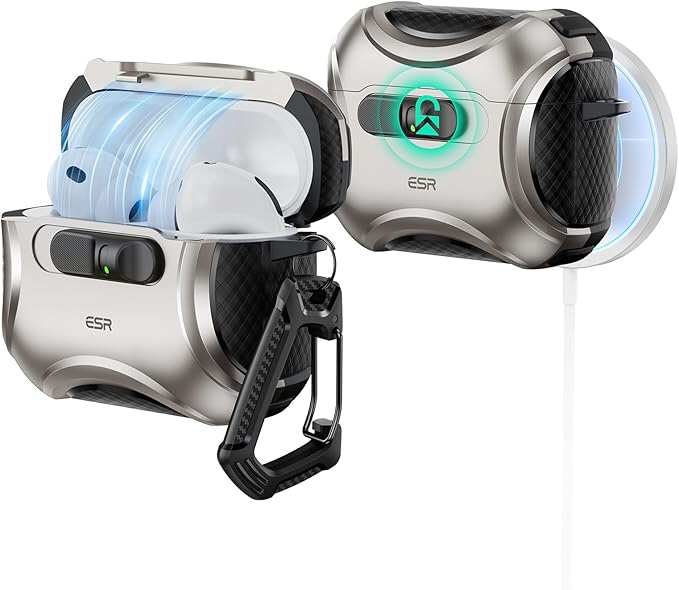 ESR AirPods Pro3 ケース(2025)MagSafe充電 USB-Cケーブル対応 落下衝撃保護 片手で簡単オープン キズ防止 チタニウム 1C02200202-Titanium