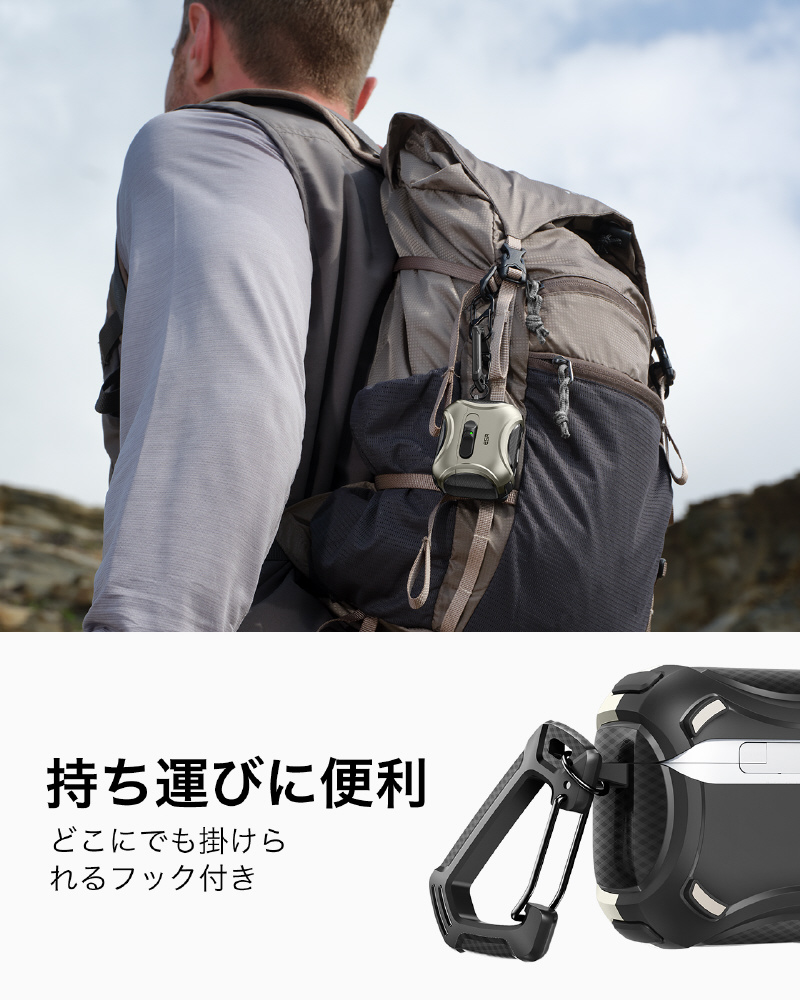 衝撃吸収ポリマーとエアガードコーナーが充電ケースを落下や衝撃からしっかり守ります。
