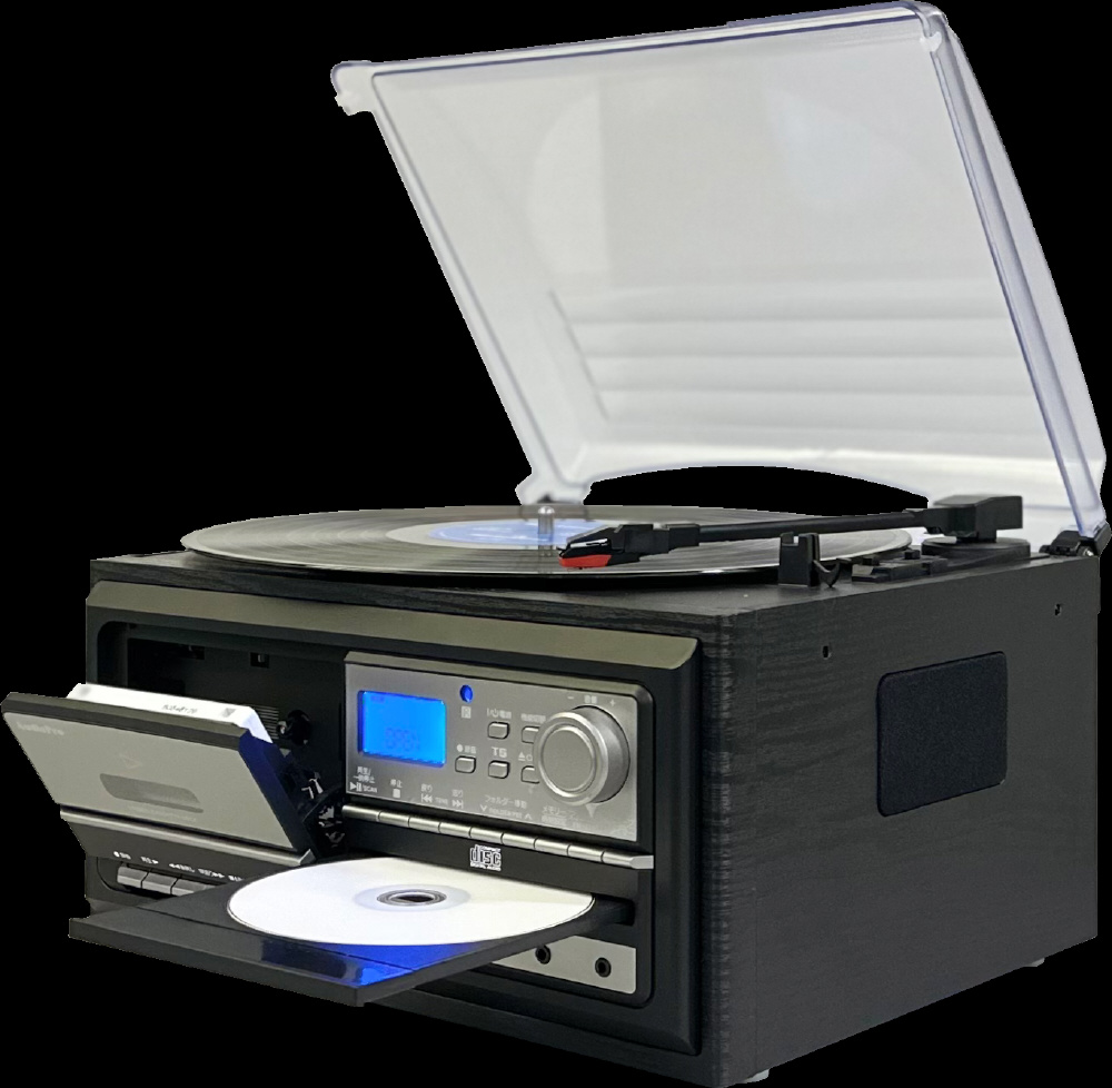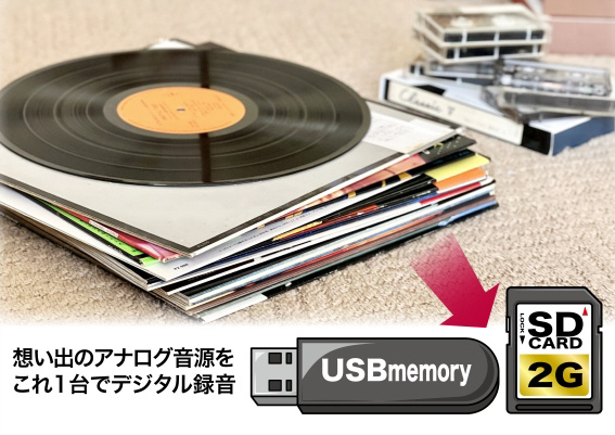 レコード・CD・カセット・ラジオ(ワイドFM対応)に加え、USBメモリやSDカードの再生/録音にも対応した、1台完結の多機能オーディオプレーヤー。懐かしのアナログ音源も、ボタンひとつでUSBやSDカードに簡単録音。思い出の音を手軽にデジタル保存できます。