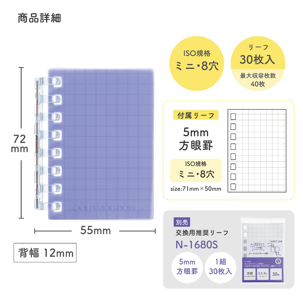 交換用リーフのオープンリングノート<適合リーフ> N-1680Sを活用することで、繰り返し使用できます。