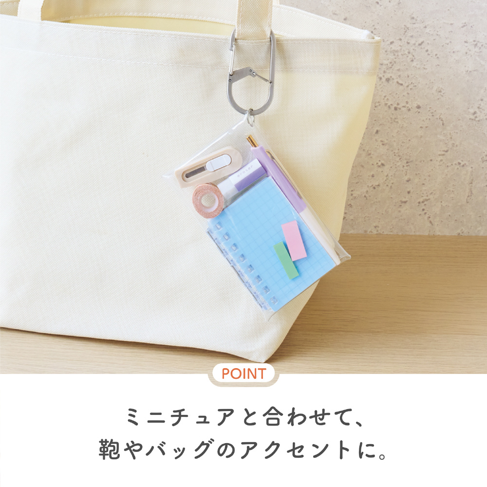 透明のポーチに入れて、バッグチャームとして可愛く持ち運びができます。