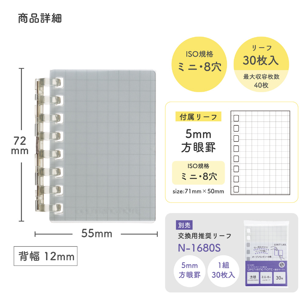 交換用リーフのオープンリングノート<適合リーフ> N-1680Sを活用することで、繰り返し使用できます。