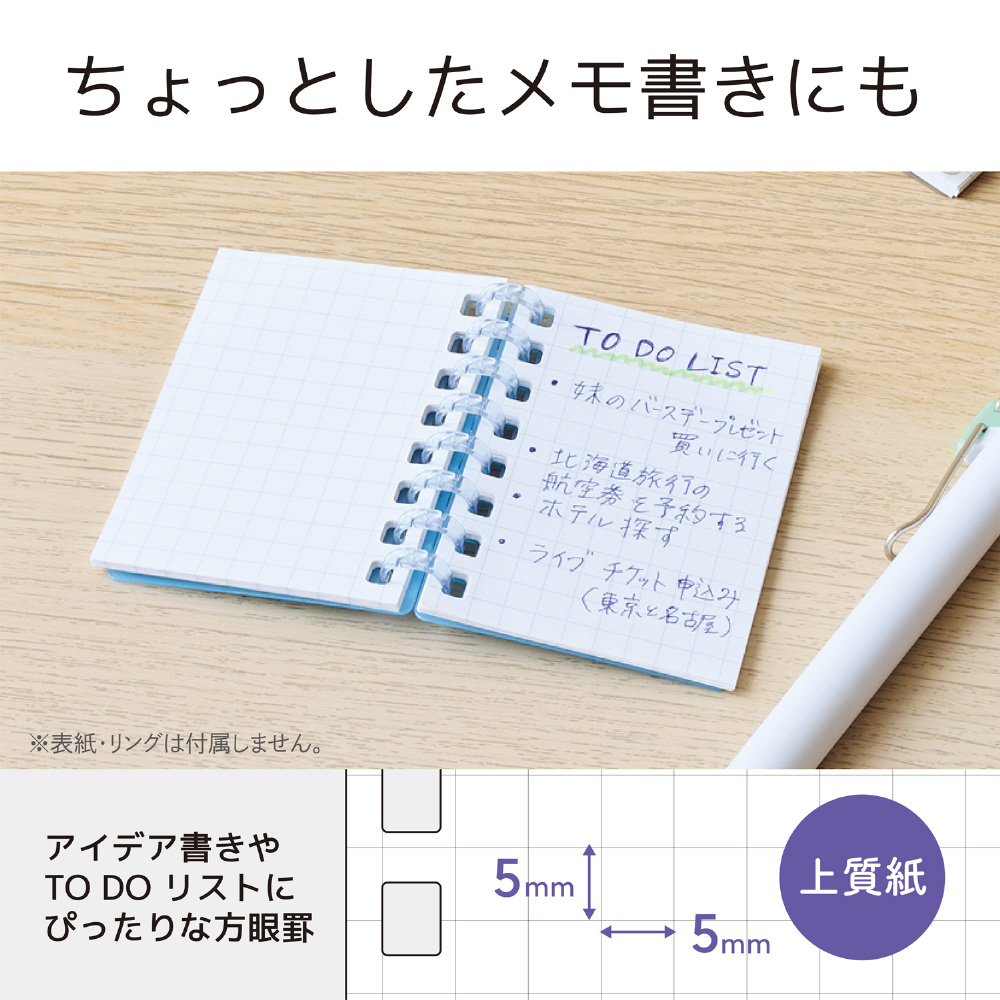 ノートのリーフは 5mm方眼罫 30 枚入りです。