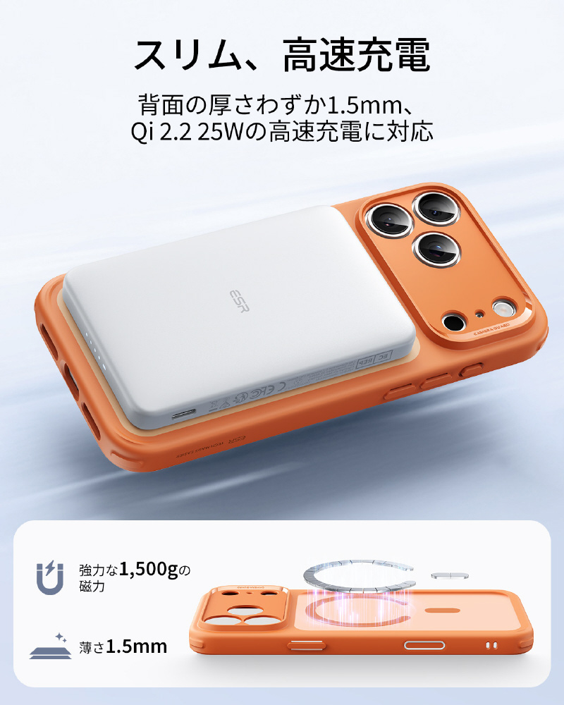 業界トップクラスの強力磁力(1500gの保持力)を内蔵した iPhoneケースです!MagSafeワイヤレス充電器