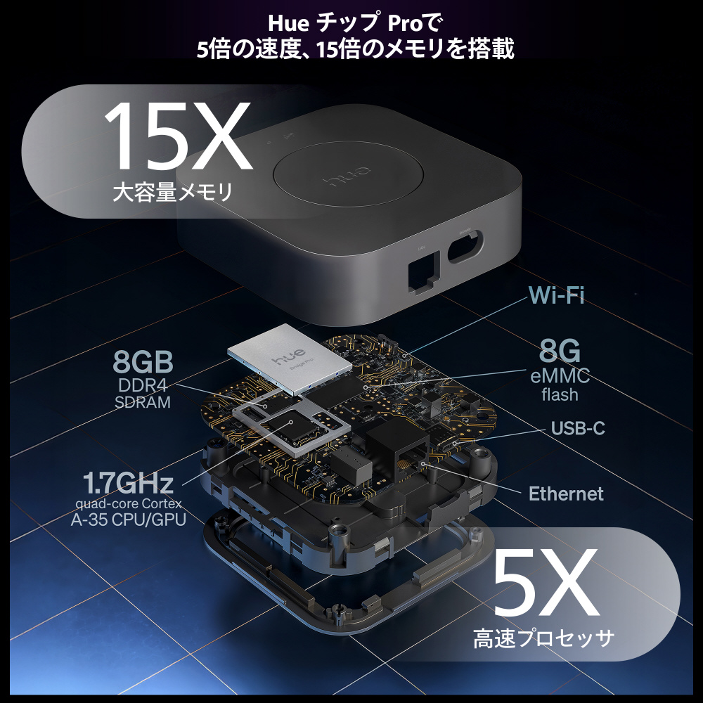 超高速 1.7GHzの処理速度とクアッドコアCortex-A35 CPUを備えた新しい「Hue チップ Pro」を搭載。超高速応答と複雑なアルゴリズムの実行、AI機能の実行が可能になりました。