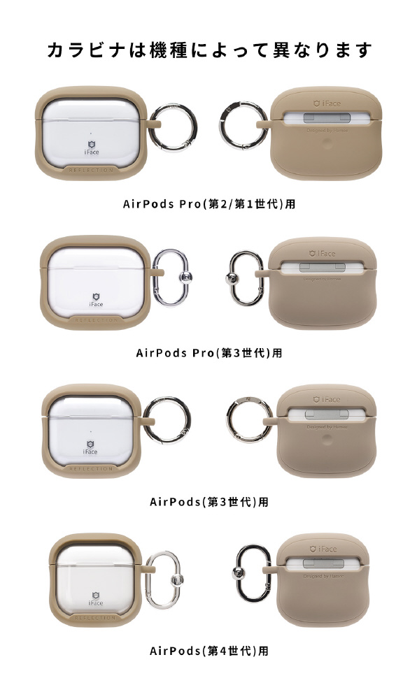 ・AirPodsPro(第2/1世代)、AirPods(第3世代)は「丸いカラビナタイプ」、AirPods Pro(第3世代)、AirPods(第4世代)は「シグネチャーカラビナL」が付属