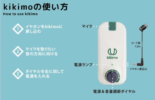 kikimoはハンズフリーで使える簡単操作の助聴器です。