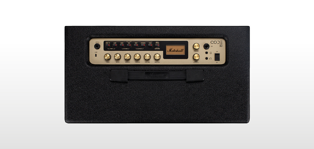100の編集可能なプリセット、ベース、ミドル、トレブル、ゲイン、ボリューム、プリFX、アンプ・モデル、モジュレーション・エフェクト、ディレイ・エフェクト、リバーブ、パワー・アンプ・モデル、スピーカー・キャビネット・モデル、他iOSおよびAndroidデバイス用のMarshall Gatewayアプリ上で操作可能な各種コントロール