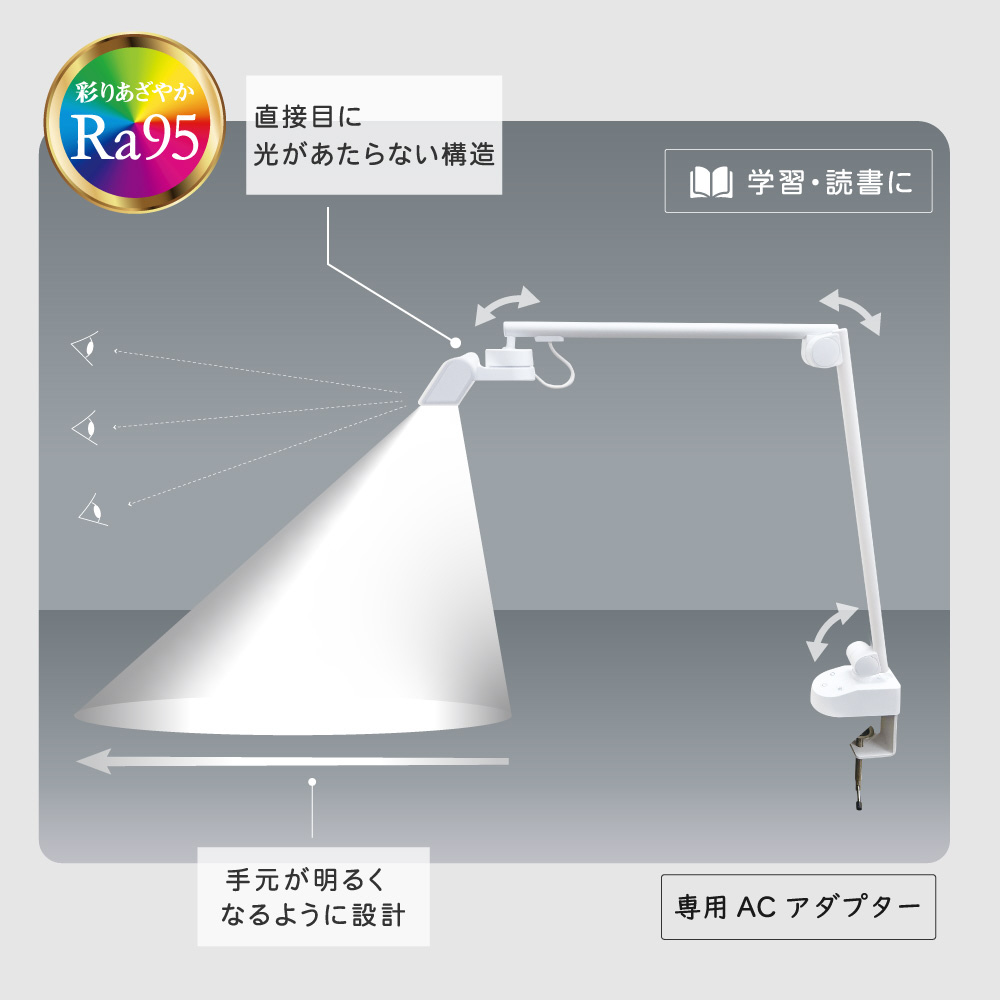 LEDアームライト クランプタイプ ホワイト AS-LDR772K-W [LED /昼光色〜電球色]