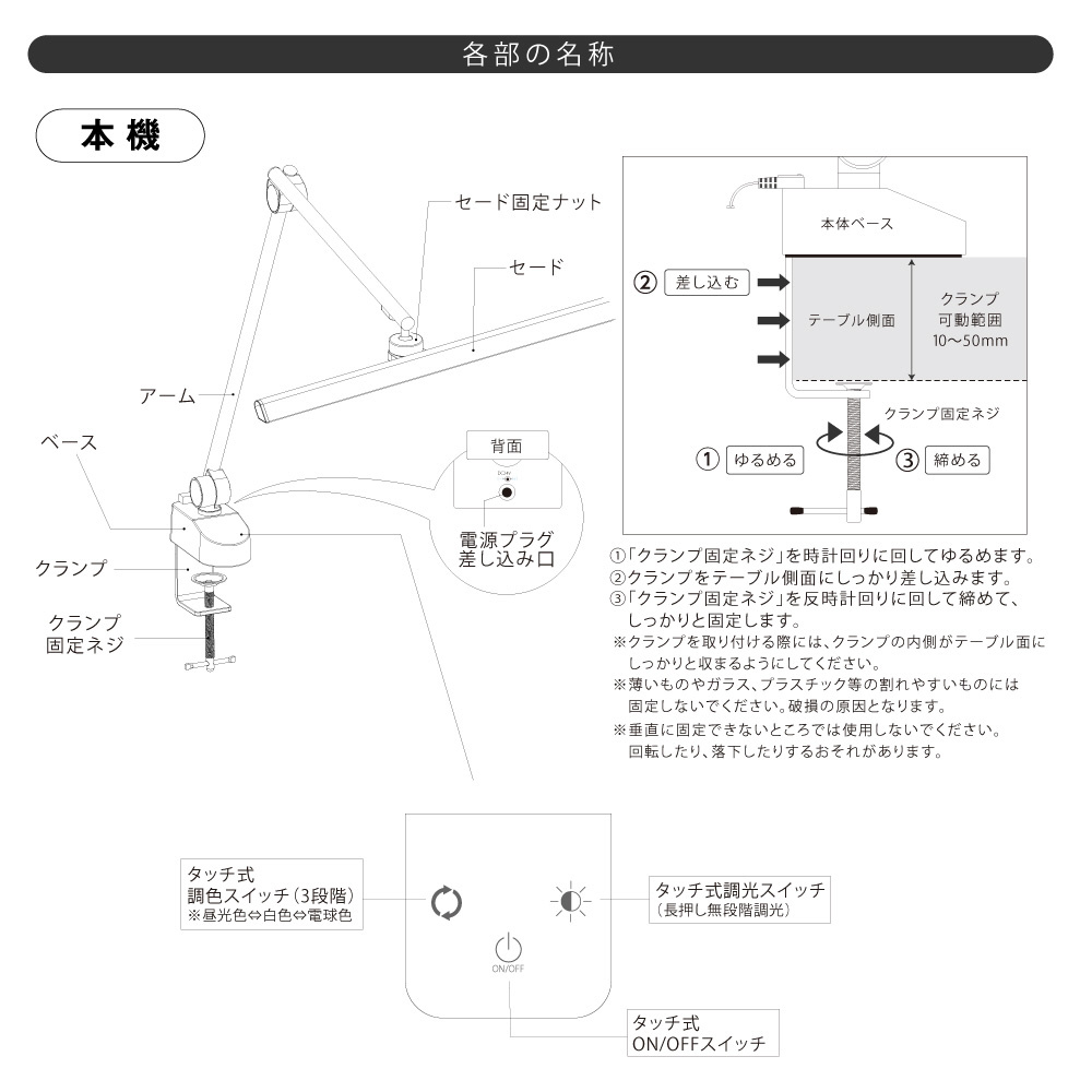 ● タッチ式無段階調光・3段階調色(白色/昼光色/電球色)
