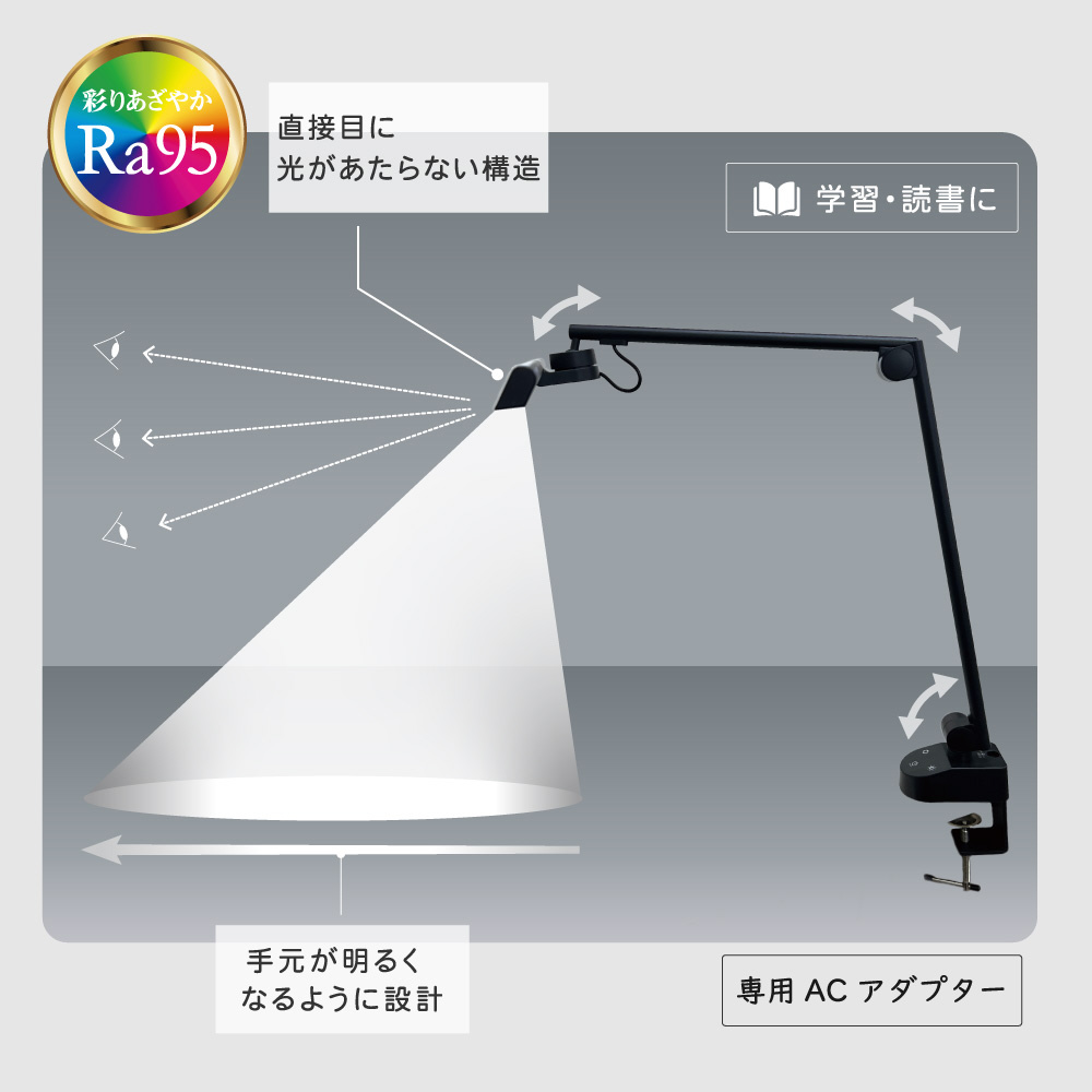 LEDアームライト クランプタイプ ブラック AS-LDR772K-K [LED /昼光色〜電球色]