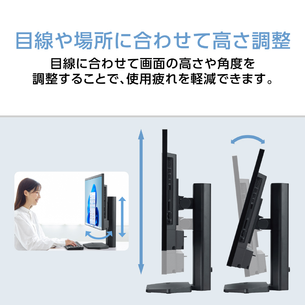 モニタが見やすくなり、目や肩の疲れを軽減できます。